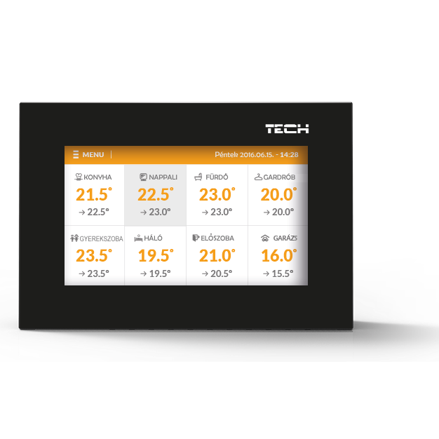 A HU-285 kezelőfelületéről beállítható az összes aktív zóna kívánt hőmérséklete, módosíthatók a zónákhoz rendelhető üzemelési programok, valamint a zónák gyári megnevezései is megváltoztathatóak.